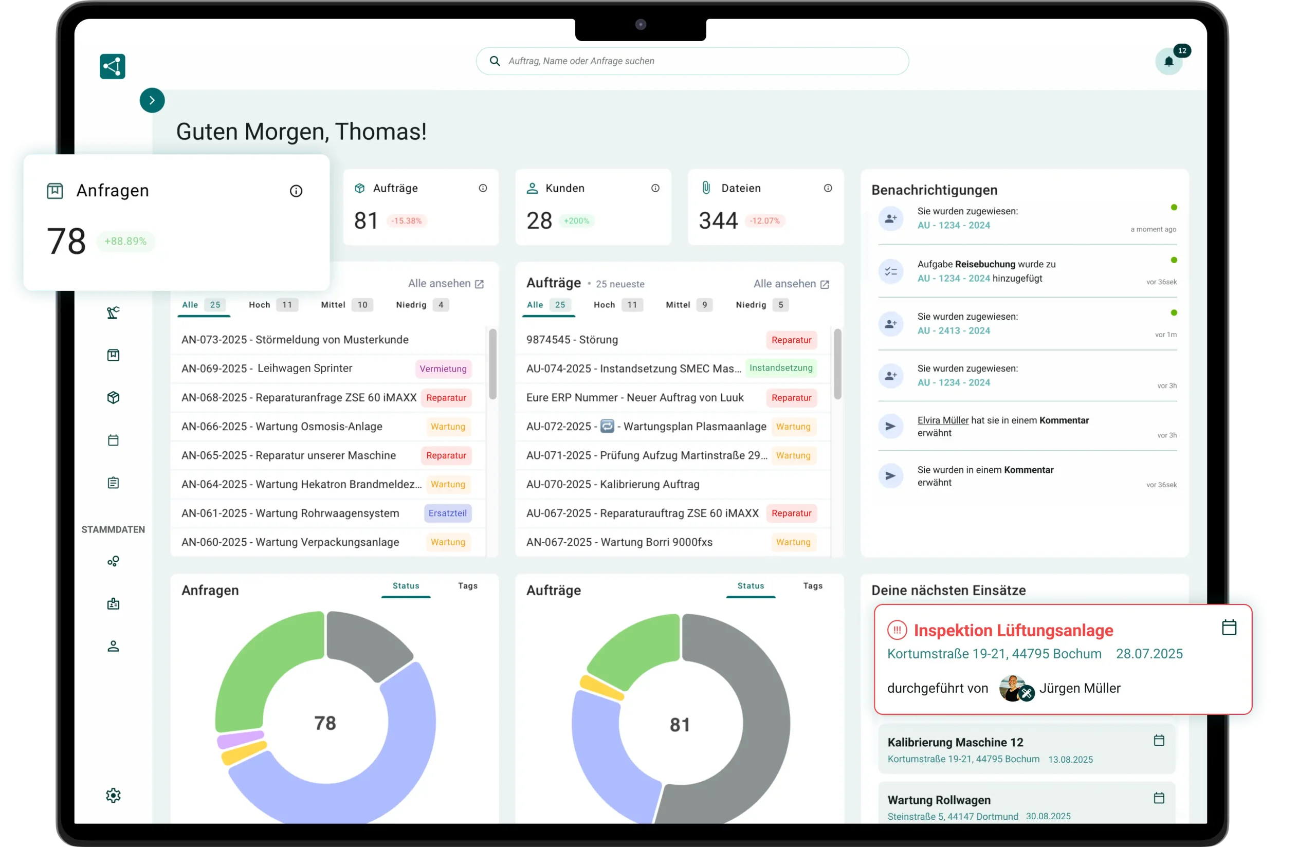 Erfasse, verfolge und löse Störungen oder Serviceanfragen zentral und transparent. Du siehst jederzeit, was zu tun ist, und behältst den Bearbeitungsstand klar im Blick.
