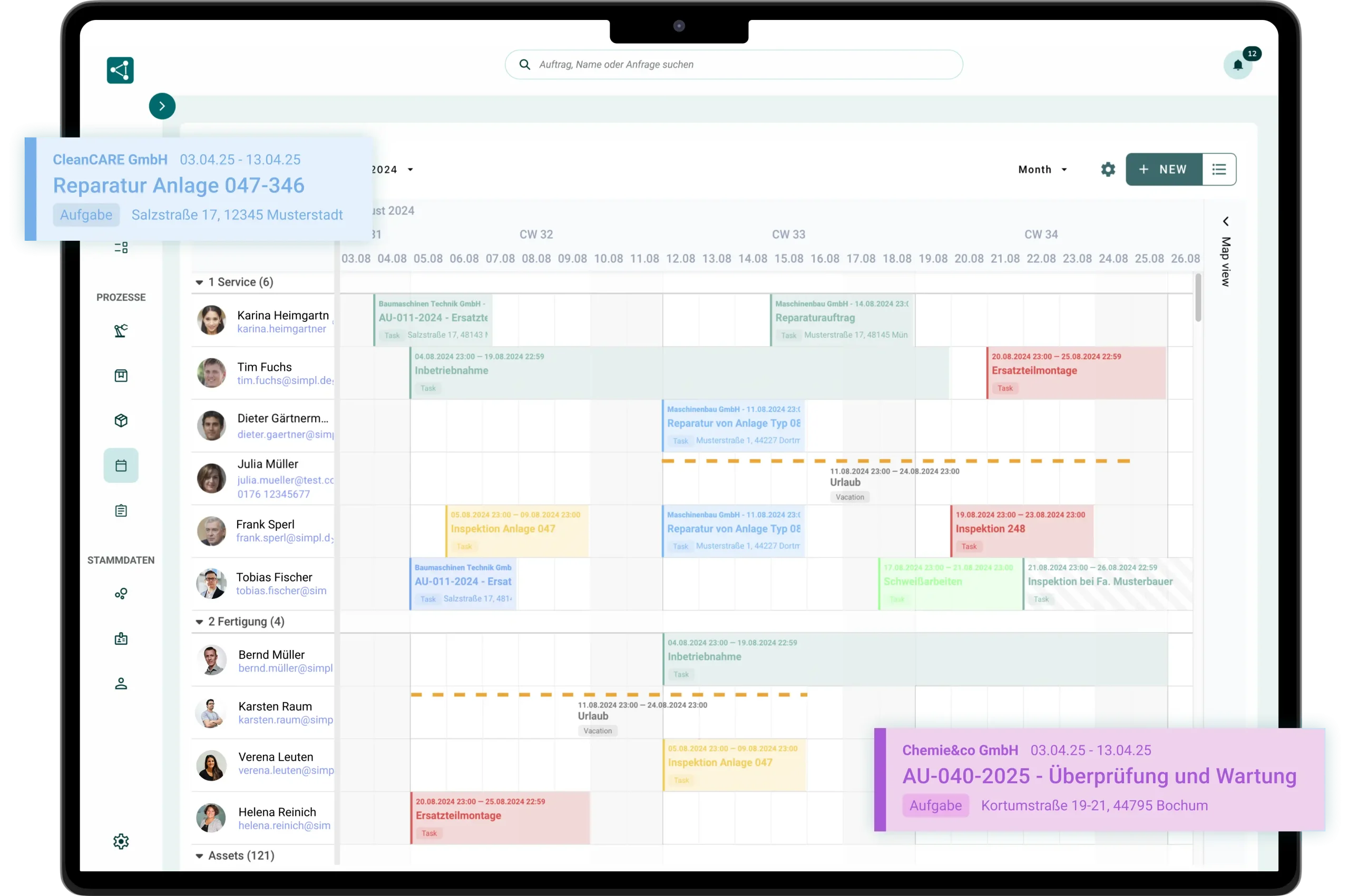 Plane und koordiniere Einsätze, Wartungen und Ressourcen ganz einfach per Drag-and-Drop. Reagiere flexibel auf Änderungen – mit voller Übersicht und Echtzeit-Transparenz.